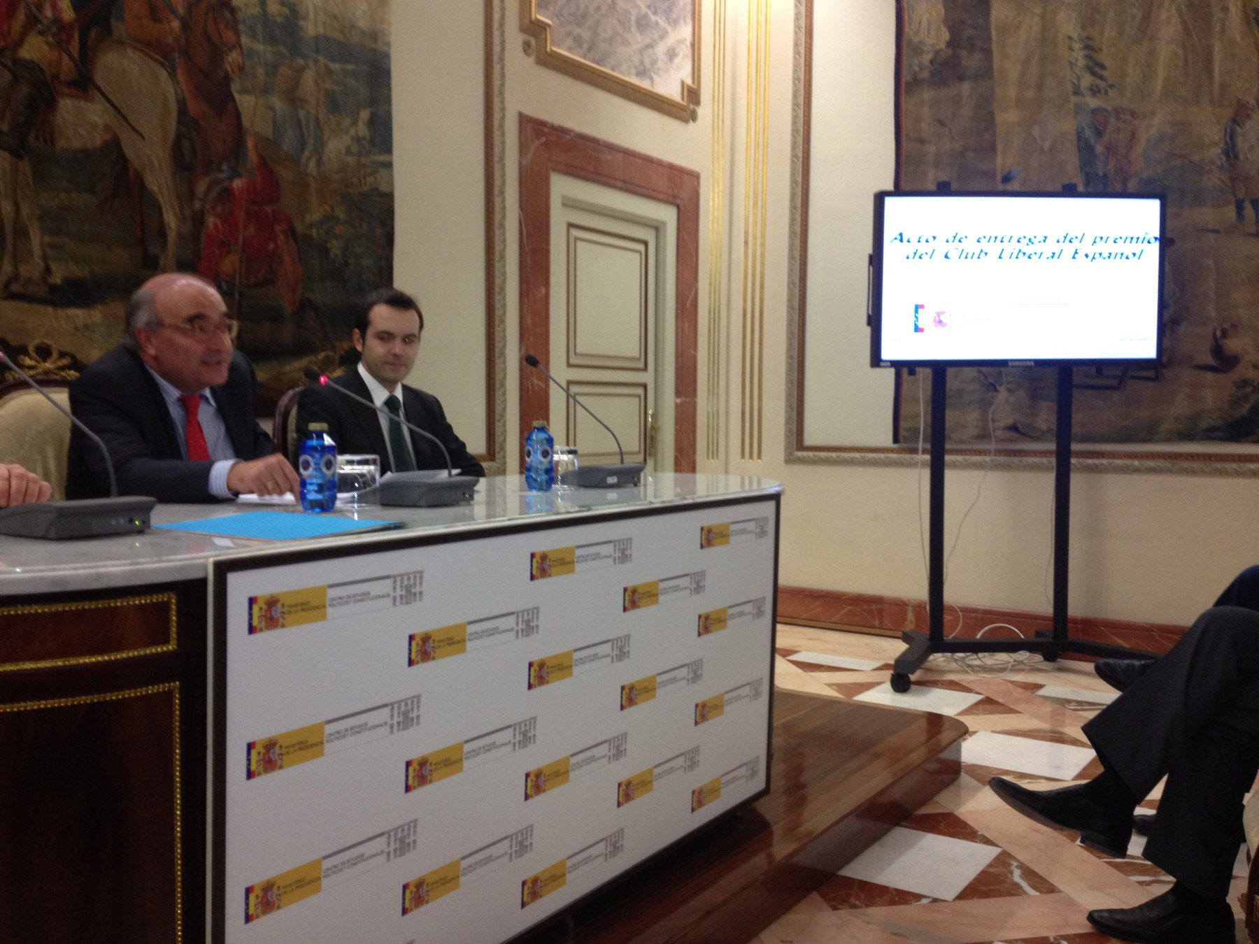 Fotografías de la entrega del premio CLUB LIBERAL ESPAÑOL 2012 al Instituto Juan de Mariana, realizada por nuestro Presidente Carlos Entrena el pasado miércoles 28 de noviembre en el Centro de Estudios Políticos y Constitucionales. El premio fue recogido por Juan Ramón Rallo, director del Instituto Juan de Mariana.